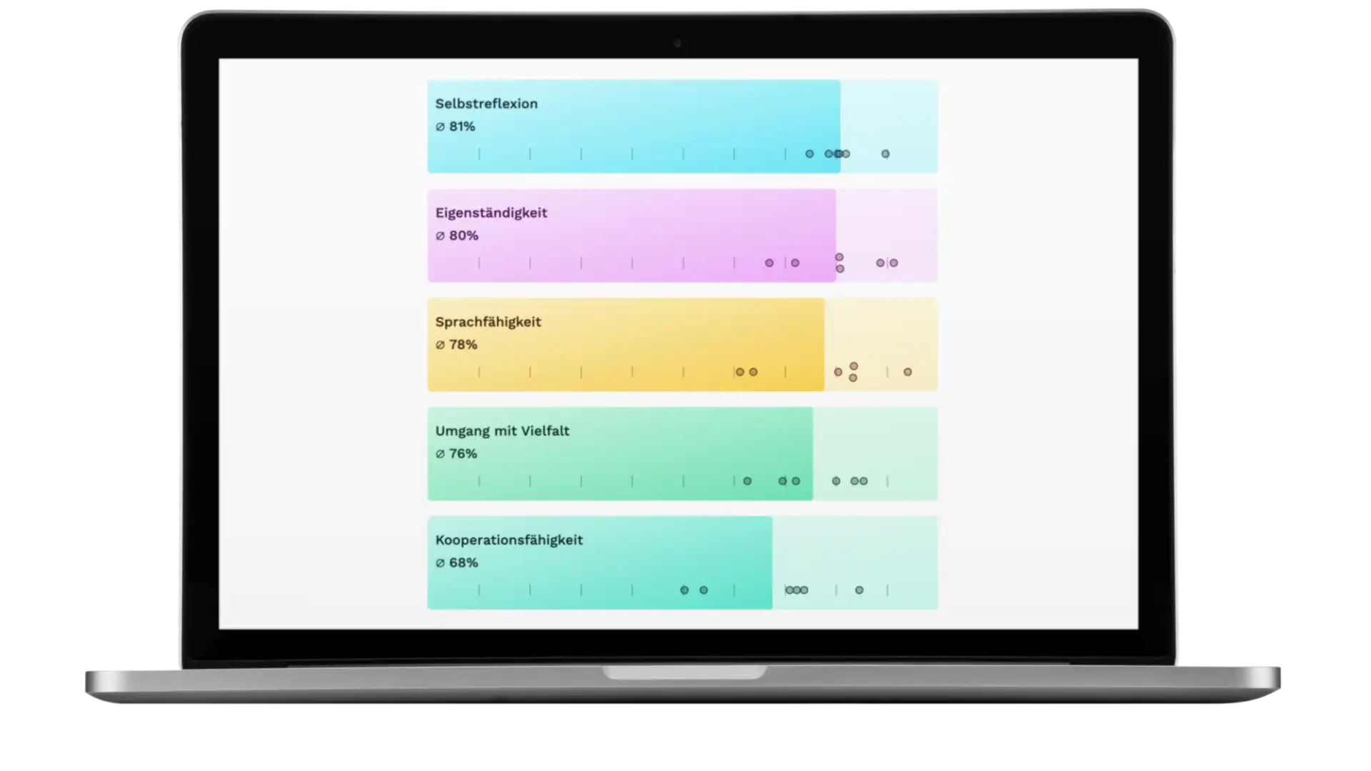 Franziska Bühlmann: So it's not about giving grades, but about making the learning status visible and approaching a well-founded assessment. This gives teachers an overview of where their students stand, which is a good basis for developing their own teaching. Meanwhile, the student’s learning records are also available. This is a great starting point for discussions between teachers and students, their parents or guardians, and the subject team — this makes it possible to address strengths and areas for development and to plan the next steps together. For this purpose, the tool from Menon Skills and hep Verlag offers appealing and clear graphics that visually support the assessment of the learning progress.